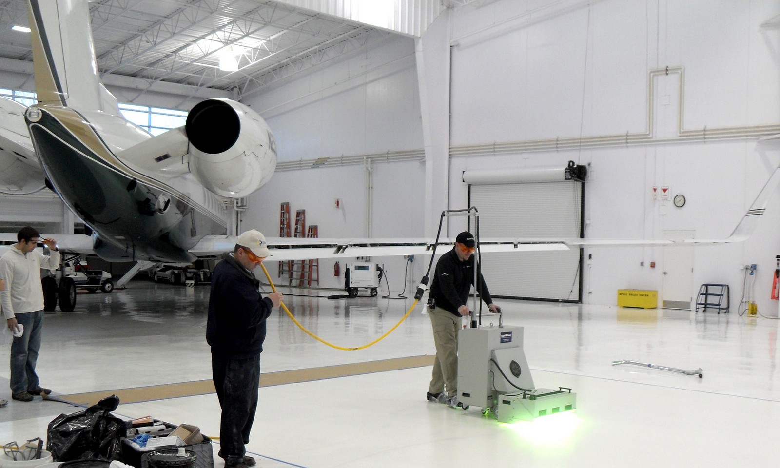 Environmental surfaces are disinfected by permanently installed UV fixtures or mobile room disinfection UV systems while the rooms are unoccupied.